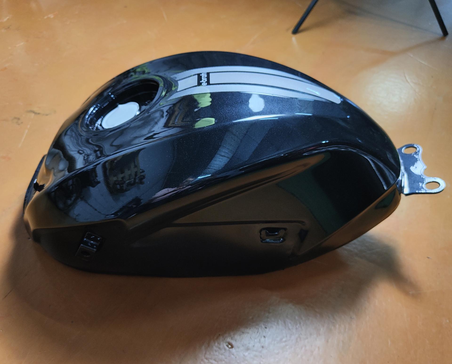 Deposito de gasolina de uso estético, metálico, se suministra solo el deposito, sin el tapon ni llave de gasolina.