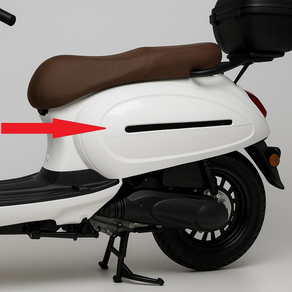 Los laterales se ubican a ambos lados del scooter y forman parte del carenado principal. Su función principal es: