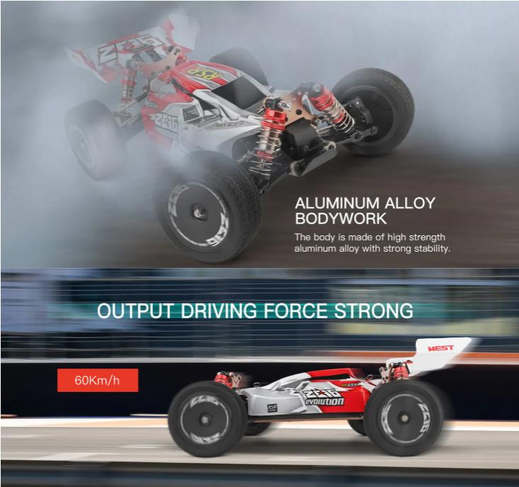 Coche RC Eléctrico 1/14 4WD WLtoys 144001 RTR – 60km/h Chasis Aluminio – Ideal Jóvenes y Adultos